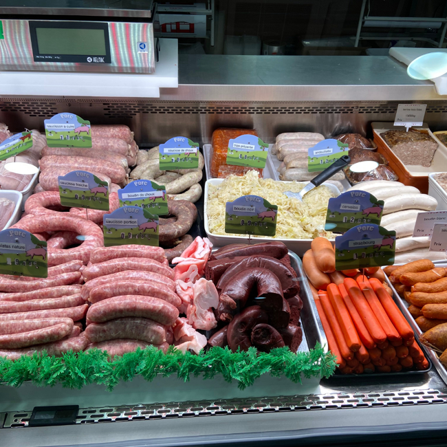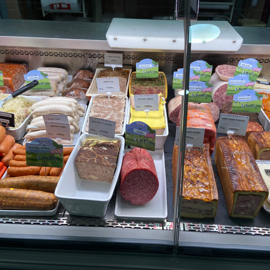 Rénové en 2019, le magasin propose des spécialités maison : saucissons secs, pâtés de campagne, terrines de campagne et de lapin, andouilles…
